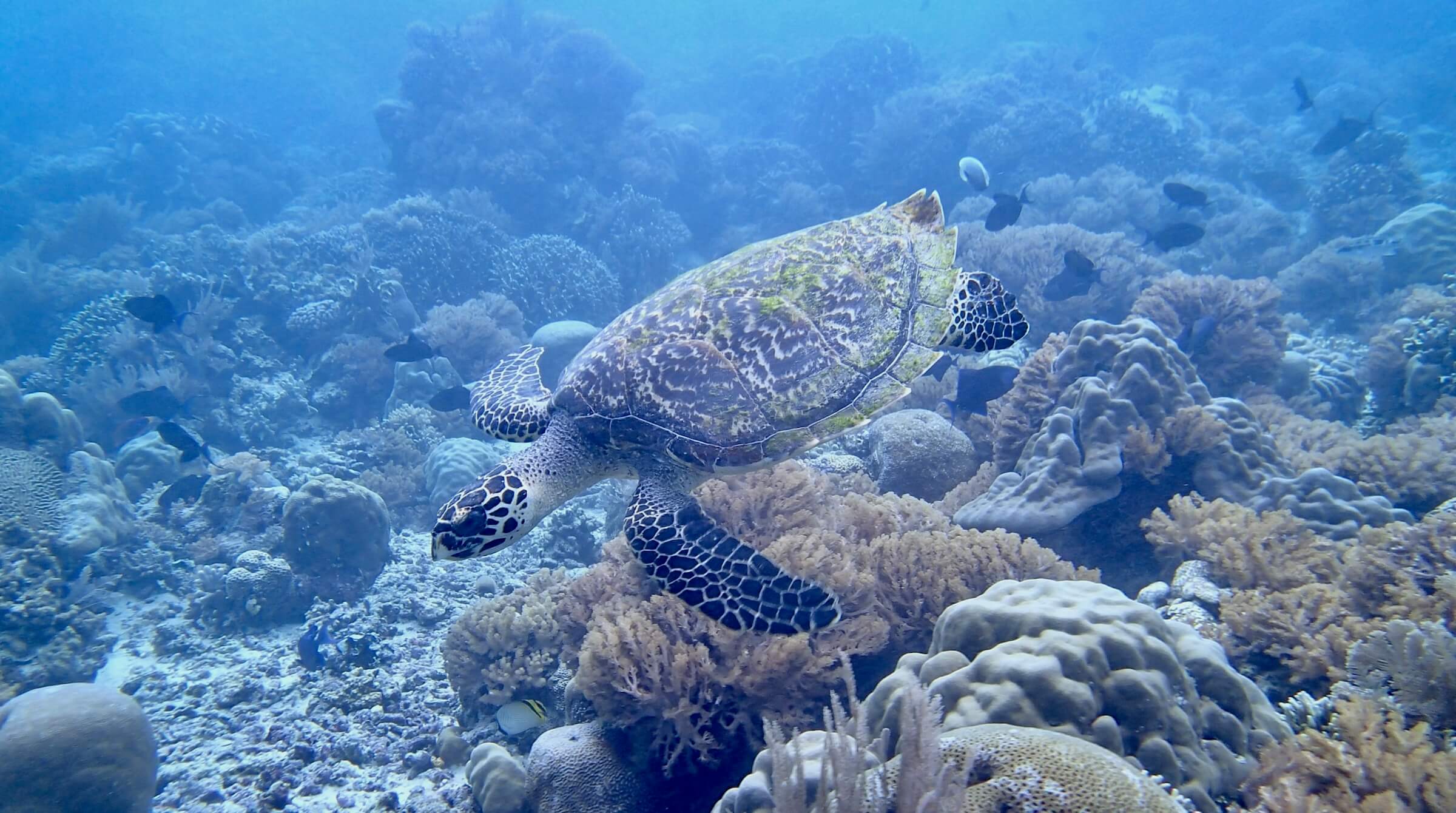 • Bunaken Marine Park is home to huge populations of green and hawksbill sea turtles that thrives on the shallow reefs and along the drop offs. Cuttlefish, razorfish and nudis are among the many other inconic species we’ll be searching during our snorkels.
